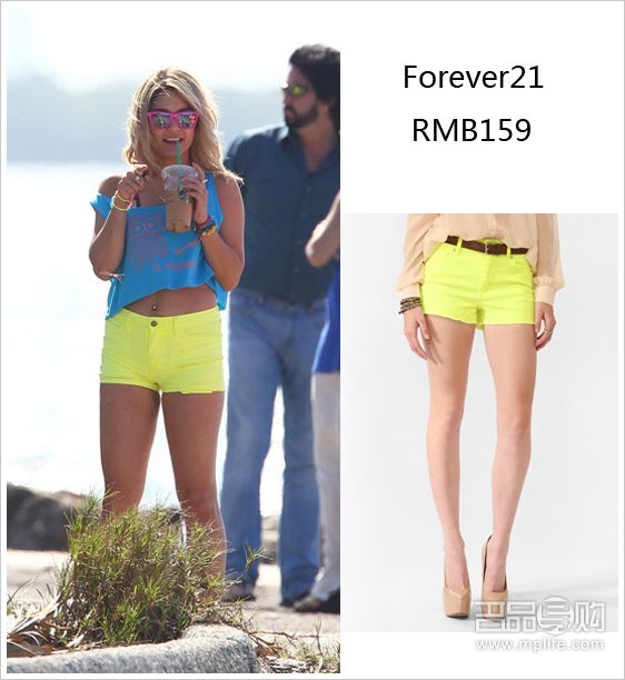 非常大胆的穿着,抹胸+小热裤,布料少得不能再少了,夏天的清凉选择。