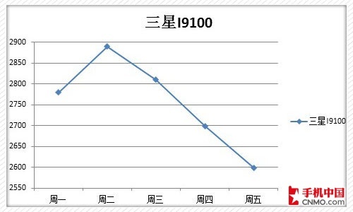 三星I910(参数 图片 样张 评测)0大家都非常熟悉,1.2GHz猎户座双核CPU的加入为其赢得了不少掌声,同时也让它在全球手机市场大卖,使得三星在近年来收获颇丰。这款手机随着上市时间的加长,价格也呈现处下跌趋势。从下图中我们可以看到,只有周二有小幅上扬情况,随后便一路狂跌,截至周末其售价已经跌至2599元。