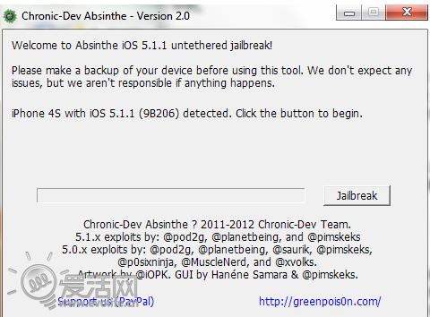 苦苦等待数月之后,经过越狱大神们无数个不眠夜的努力,iPhone/iPad/iTouch iOS 5.1.1完美越狱工具Absinthe 2.0终于在今晚的八点三十分准时发布,为天下果粉送上一道自由的饕鬄盛宴。小编作为越狱的忠实支持者,第一时间舍身做了小白鼠。下面就一起来实战iOS 5.1.1完美越狱吧。