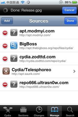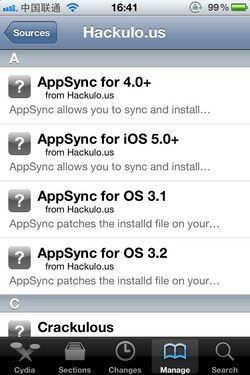 接下来便可以通过Cydia来安装所需要的插件,享受iOS的自由了。点击Cydia图标,Cydia会自动配置,之后设备自动开始Spring Board。待上述步骤完成后,再次进入Cydia程序,选择“用户”身份,为了能够任意安装第三方程序,这里还需要安装同步补丁。在Cydia中搜索AppSync for iOS 5.0+安装,我们需要添加:cydia.hackulo.us源,在版权警告提示对话框中选“仍然添加”完成Appsync补丁源的添加(见下图)。