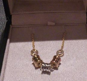 去之前,就看好一款BVLGARI的三色金手链,我特别喜欢手链,到了港,竟然没在海港城里找到BVLGARI,翻了下打印的攻略,看到在金钟有,就决定第三天去,没想到歪打正着,在ifc看苹果后,看了下ifc的购物指南,发现了这里就有BVLGARI,欣喜若狂啊,本来,只是在官网看的这款三色金手链的图片,并没有在北京专卖看过实物,去之前,老公还说,如果太单薄了,就不买了,没想到,真是惊喜,第一眼看到这个手链,就好喜欢,戴上好有感觉,二话没有多说,直接交钱走人。