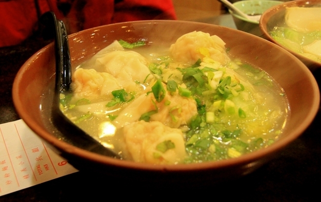 在“罗富记粥面专家”吃到了传说中的云吞面。汤底是把大地鱼干放火上烧出香味后再与虾米、虾籽、猪骨等一起长时间熬制,用料和时间都缺一不可,并且不能让汤滚沸,只能用小火熬制,还得有专人守候,一但滚沸立马调节火力。如此费时费工,才能做出汤清而味浓的一碗好汤底,再加上韭黄特殊的香气,解腻的同时,更加突出了汤的鲜美。