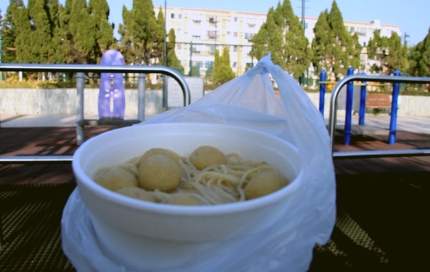 这个华丽丽的快餐是在坪洲岛买的。和其他离岛不同,坪洲的游客非常少,找的小店店家不会讲普通话,我也不知道怎么沟通,最后就买了这么一碗鱼丸面。12港币。