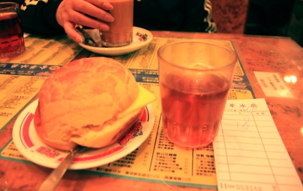 著名的鲜油菠萝包!那天在旺角遍寻二楼书店,正好看见一家金华冰厅,就走进去,看了餐单点了鲜油菠萝包和奶茶。等待的时候抬头一看,居然满墙贴的都是这家店被各杂志采访的图片,号称全港最好吃的鲜油菠萝包。且不管有多少家这么号称,这个菠萝包味道确实很好。