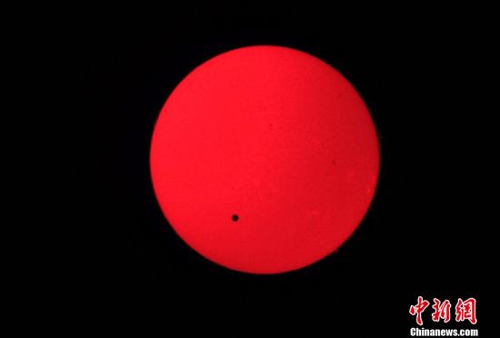 6月6上午,在吉林省长春市用日珥镜拍摄到的“金星凌日”。这是本世纪的第二次金星凌日,也为本世纪最后一次,下次出现这种奇观将是2117年。中新社发 张瑶 摄