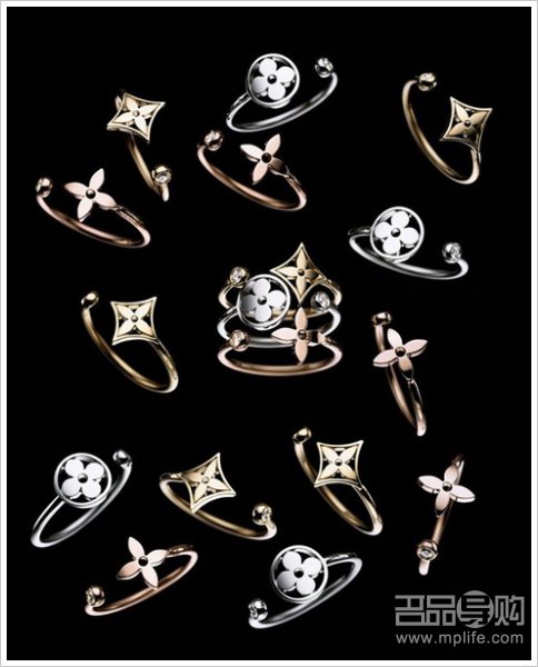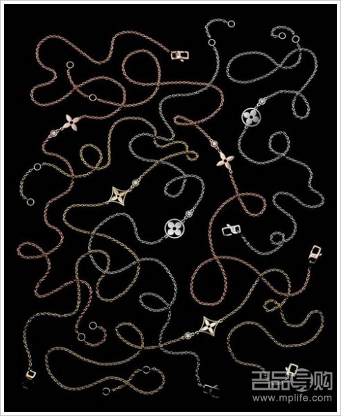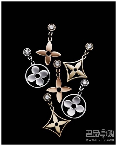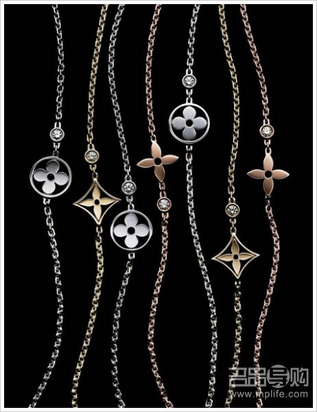 路易·威登LV (Louis Vuitton) 推出Monogram Idylle系列新款珠宝。返璞归真的设计运用玫瑰金、黄金和白金三种不同材质,嵌以璀璨钻石,融于典雅花朵的造型中,简单优雅。这一系列的手链和项链均可自由的连接、叠加或混搭,让你在拥有美丽的同时体会到创意无穷的搭配乐趣。