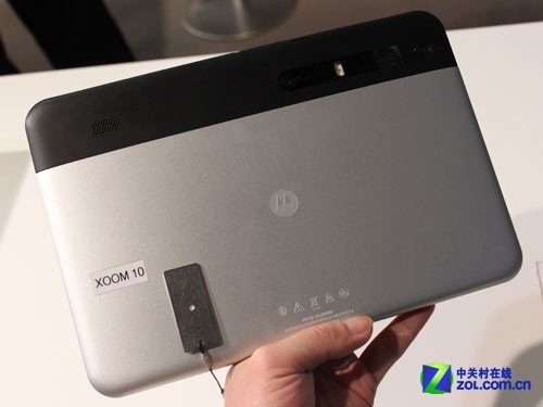 在外观上,其背部使用了磨砂手感的金属面板,起到了一定的防滑效果,同时让本机更具坚实感,用料要比市场中一些ABS工程塑料机型讲究。此外,从实测数据上看,摩托罗拉XOOM比苹果iPad更薄,因此便携性会更加出色一些。