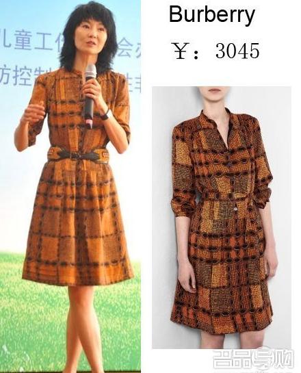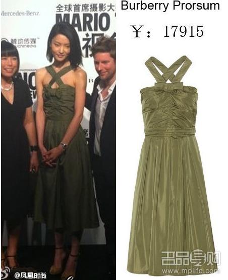张曼玉身穿巴宝莉的连衣裙搭配同品牌的腰带,基本OK,可是太瘦了,真的好看么?