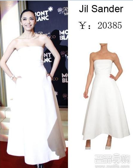 很清新简洁的Jill Sander白色蓬形礼服,可惜硬是把姚晨穿成了小短腿。