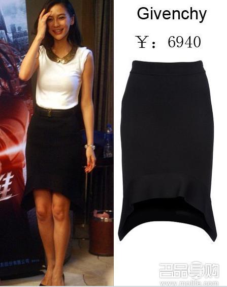 baby金色小圆领+白色Tee+黑色不规则短裙,既简洁大方,又不乏亮点的一身。