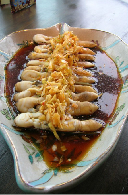相较两道“大荤”之菜,以鲍鱼为主要原料的“麻辣海耳”和“麻辣虾”两道海鲜显然更得人心。“麻辣海耳”的配料着实简单,一点蒜蓉、姜碎,佐以浅浅的红汤调料;但就是这份简单,将鲍鱼原本的鲜味凸现出来,再加上火候把握上的老到,稍微用力,筷子就能插入其中,入口的弹牙之感可想而知,也因此,这道菜常成为食客的心水之选。“麻辣虾”是“胡同”的另一道招牌菜,其卖相颇似泰国小炒,以四川干辣椒和芹菜爆炒带尾大虾,要的就是那份浓烈。值得一提的是,芹菜虽为配菜,但不仅在颜色上形成了对撞,更吸收了所有原料的精华,食之鲜嫩可人。