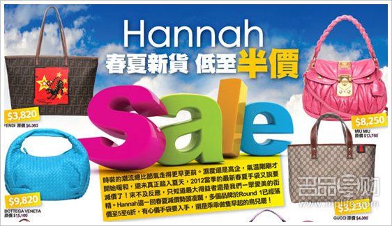 如果你还只认识米兰站或者TWIST,那你就OUT了,Hannah 是家一站式的欧洲名牌专卖店,经营欧洲时装品牌拥有十年以上经验,店内所售卖的名牌手袋及服装如Gucci、Prada、Balenciaga、Bottega Veneta、Chanel、Hermès等,均由欧洲直接入口。为保证店内所售卖的货品最新最齐,顾客们能时刻紧贴着潮流,每星期都会派买手飞往欧洲各个大城小镇,购入当季最新上架之款式。价格自然也是胜过香港专柜价格。近期春夏新品优惠多多,赶紧看下!