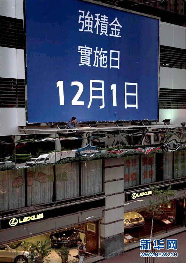 15年前的7月1日,一个全球目光汇聚的时刻,一个亿万国人感动的瞬间。分离一个半世纪后,香港终于重回祖国怀抱。时光荏苒,东方明珠栉风沐雨,始终光彩依然。回望15年,那些或喜悦、或悲伤、或激情、或凝重的瞬间,渐次浮现。叫人慨叹历史变幻的同时,也给了我们对于香港未来的无穷信心和期待。 2000:强积金走进市民生活 2000年12月1日,香港开始实行强制性公积金计划。除豁免人士外,18岁至65岁的他雇及自雇人员必须参加,至少抽取每月收入的5%加入基金投资,作为退休保障。图为2000年12月1日拍摄的香港会展中心附近的强积金宣传横幅。新华社记者 薛东梅 摄