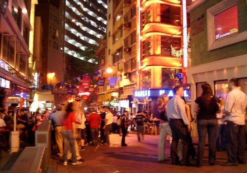 虽然这里知名度已够高,但依然不可忽略。这是香港夜生活的代名词,由德己立街、威灵顿街、云咸街、和安里、仁寿里及荣华里构成,是聚集大小酒吧与餐馆的中高档消费区,深受中产阶级、外籍人士及游客的欢迎。当然,一重要原因是,此地艳遇指数极高。由鹅卵石铺成的巷道,各种风情餐厅、酒吧林立,型男索女,鬼佬西妹,灯红酒绿,彻夜狂欢。在这里你才能体会到什么是香艳,什么是“纸醉金迷”。
