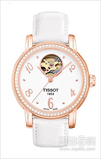天梭表的 Lady Heart Diamonds 女装钻石腕表,外形充分展现女性美,还骄傲地将「真心」表露无遗,此表灵感来自美丽的童话「灰姑娘」,在午夜 12 时这神奇的时刻,透过表盘窗口展示机芯运作。而 PVD 玫瑰金表壳镶以 66 颗美钻,配以鳄鱼纹白色真皮表带,尽显醉人魅力。
