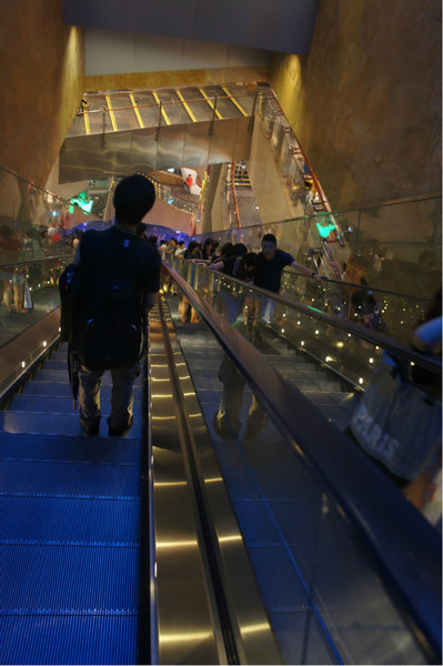 朗豪坊里有几部超级大电梯,好长好长噢。怕是有五六层这么长。害我一错过,就多走了好几层,绕了一圈又一圈。