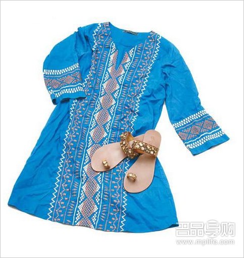 Velvet蓝色刺绣图案连身裙 未定价(a)、Millie's印度水晶凉鞋 $1,290(b)