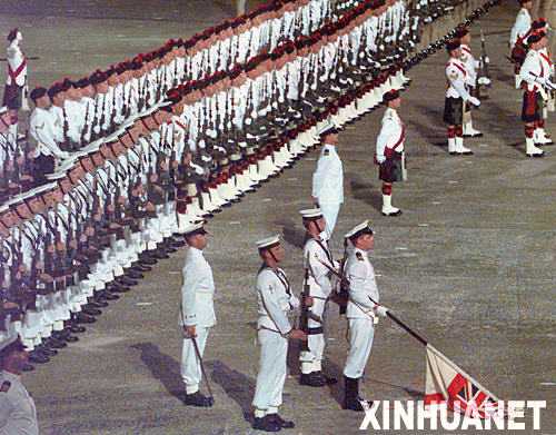 1997年6月30日,被称为“日落仪式”的英方告别仪式在香港添马舰东面举行。 新华社发