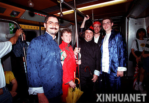 1997年6月30日晚,来自爱尔兰的五名旅游人士,见证了香港回归祖国的庆典。 新华社发