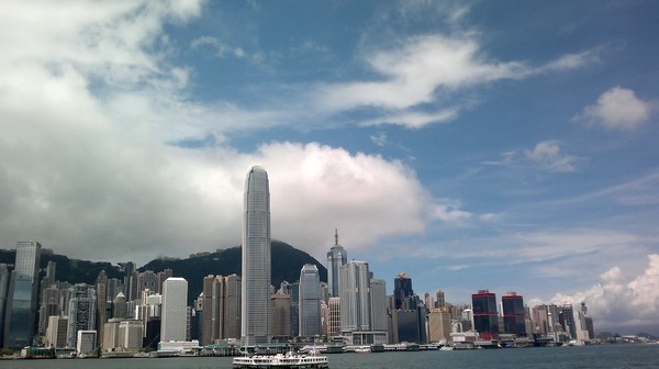 继续沿着博览道东走到湾仔轮渡码头,坐天星小轮2F前排靠右舷的位置,欣赏维多利亚港日景。