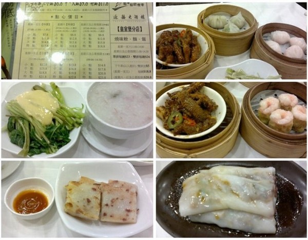 点了烧卖皇、虾饺、黄金肚、凤爪、叉烧肠粉、萝卜糕、皮蛋粥等等,11点半前结账会相对便宜一点。
