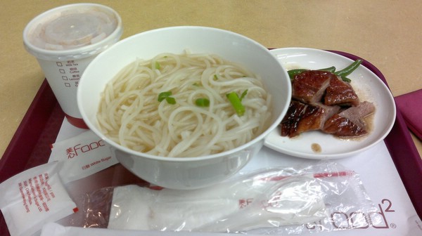 T1航站楼比T2商铺更多,在T1的美心点了份美心茶烧鹅濑粉+热奶茶套餐,只要HK$30。