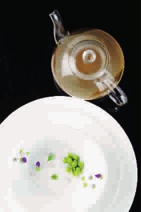 很多人喜欢Uwe的“花盆”。当侍者微笑着走来,餐盘里托着一只鲜花怒放的小花盆,一只结实的花盆,绿色植物上娉婷绽放着一朵粉红小花,姿态悠然,嫩黄色的叶苗和肥嫩的绿叶片下是满盆黄褐色的泥土。侍者手里甚至还有一只小型的喷雾器,对着花盆嗤嗤两下,花朵和叶片上就有了晶莹欲滴的露珠。