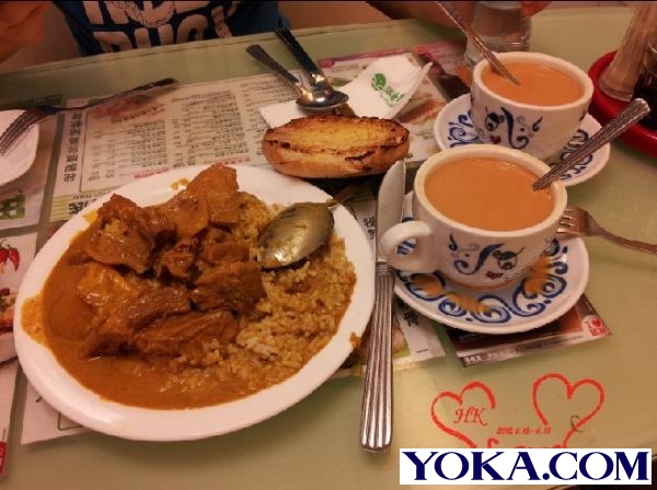 晚上回酒店的时候正好看到翠华,决定进去尝试下,里面生意果然很好,我跟老公都点了咖喱,味道不错,我完全用来拌饭的,就是辣了点,我们非常失误的点了两杯热奶茶,加了很多糖,味道依然不好,好吧,我是第二天在澳洲牛奶才喝到非常好喝的冰奶茶.