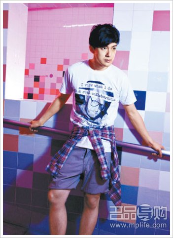Cheap Monday 红×白色格仔恤衫 $500(d)、Paura白色Terry Richardson Print Tee $750(f)、:Chocoolate卡其色短裤 $699(b)