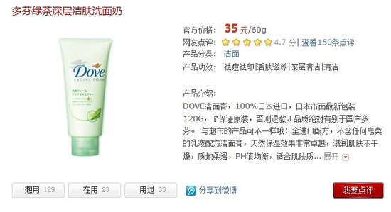 多芬绿茶深层洁肤洗面奶