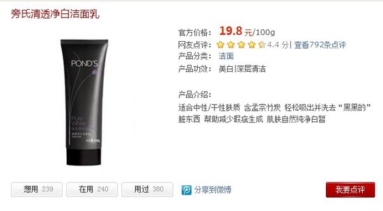 达人点评:这款在旁氏刚推出时用过,那时完全是被广告吸引住了,那个把脏东西都洗出来的广告,看了就立刻买个回来试试~性价比挺高的觉得,有时屈家优惠,买两支更优惠,现在我宿舍有两个女生都在用这个,洗完感觉挺清爽的