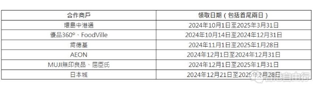 推广期内,WeChat Pay HK用户只需透过WeChat/微信扫描合作商户线下门店活动物料的宣传二维码,进入商户的专属活动页面,每月可领取总值10元的电子现金券礼包一份,内含三张不同面值的现金券。合作商户包括AEON、肯德基、MUJI无印良品、屈臣氏、日本城、环岛中港通、优品360º及Foo诶Ville。