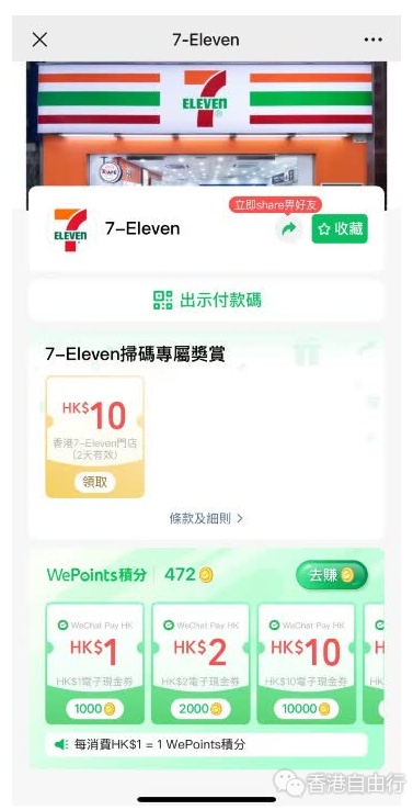 2024年12月18日至2025年1月31日期间,WeChat Pay HK用户只需透过WeChat/微信扫描香港7-Eleven全线门市活动宣传海报上的二维码,进入活动页面,可领取价值10元的7-Eleven专属优惠券一张,于香港7-Eleven门店单笔消费满100元可使用,推广期内每月可领取一张。
