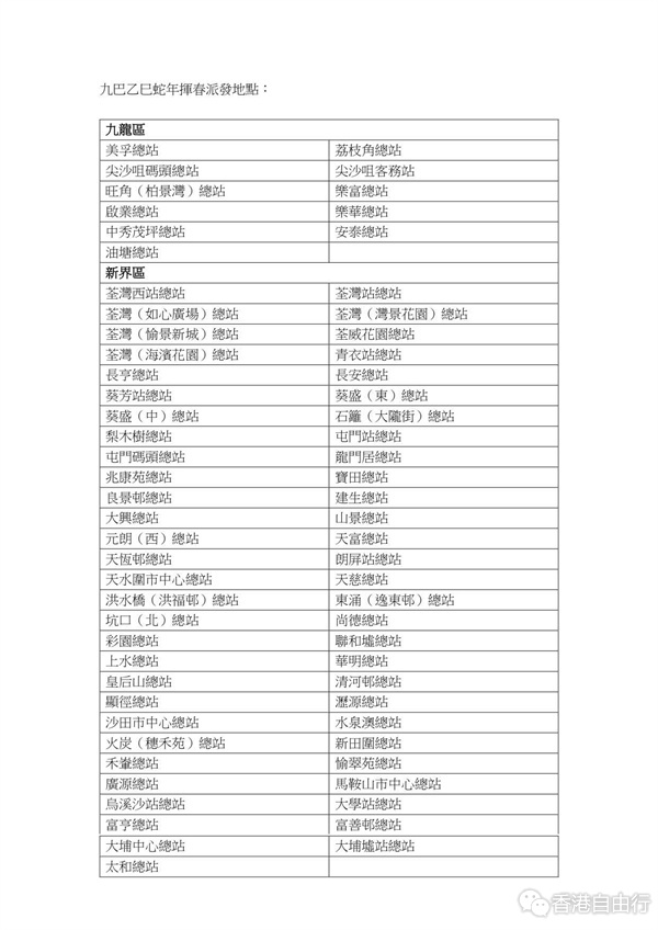 新春节庆将至,九巴精心设计乙巳蛇年的生肖巴士,每日穿梭港九闹市,冀将大吉大利传遍城内每一个角落。此外,即日起于全港逾70个大型巴士总站及客务站(详见下表),向市民免费派发粉红色蛇年挥春,祝愿全市民新一年「蛇来运转」、「万事如意」,新一年时来运转,顺风顺水,如蛇一般灵活敏捷,遇上逆境时迎刃而解。贺年挥春数量有限,先到先得。