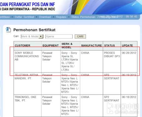 索尼Xperia SL LT26ii日前现身印尼电信网站