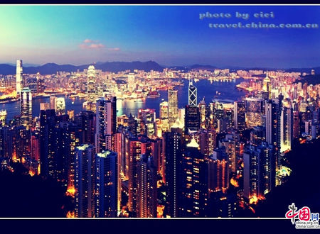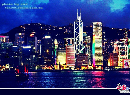 自然祥静的氛围越来越浓密,脱世一般,这时维港才真切起来。港九两岸夺目的灯海是她给自己涂上的夜光眼影,调尽亮丽色彩,配合着香港的妩媚线条和华贵夜礼服。维港忽明忽暗的眼波不似她的奢华妆容这般张扬,海潮更替中沉淀着浮华,幽冷地望穿红尘,反而更撩人心绪。