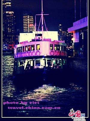 特别提醒:如果愿以更长时间地置身维港,可以选择“天星维港游”。仿照1920年天星小轮设计的“辉星轮”从尖沙咀天星码头出发,在维港环游,行程一个小时左右。票价依时间(日/夜)和游程长短不同,夜间的单程环游票价是72港币/人。