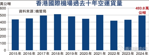 黄鹏表示,公司正通过增加在香港机场的包机、包板业务,满足快速增长的跨境电商货物需求。2020年前,跨境电商货物只佔公司业务的1鳄3,四年来呈现快速增长,如今已经超过2鳄3。目前,公司业务当中,1鳄4来自东盟,1鳄4为欧盟,1鳄4来自美国,1鳄4为中东、非州、中亚,今年公司将加大投入,积极开拓「一带一路」沿线国家如中东、中亚、南美等航线。