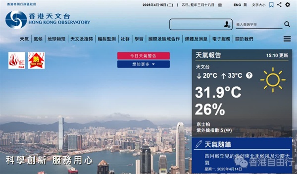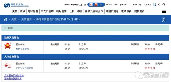 今日(15日)下午1时45分,香港天文台发出今年首个酷热天气警告,本港多区录得气温上升至33度左右,其中上水及湿地公园更分别录得超过35度成「最热地区」,打鼓岭、九龙城及深水埗等亦录得34度或以上。生署生防护中心提醒市民,特别是进行户外活动的人士,天气酷热,应採取适当措施,预防中暑及晒伤。