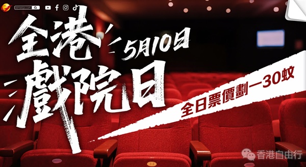 「全港戏院日」今年将连续第三年举行,根据近日公布的宣传片,2025「全港戏院日」将于5月10日(星期六)举行,届时香港戏院商会各成员院线旗下商业戏院提供全日划一30元戏票。