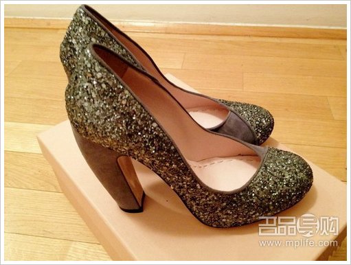 miumiu去年的走秀款,驴蹄设计,穿上blingbling的,唯一一点不好是稍稍有一点掉金粉