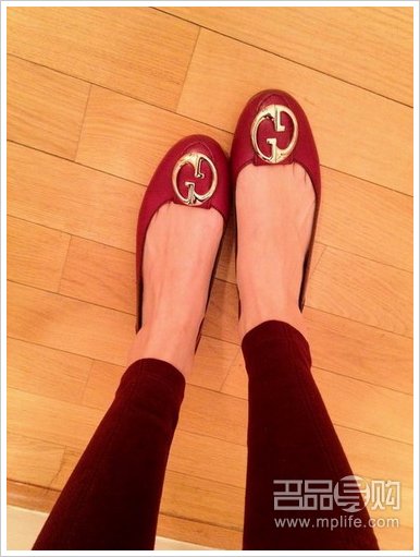 GUCCI LOGO酒红色平底鞋,平时国内穿37,GUCCI的平底37码的都要稍微大一块,所以这几双买的都是36的。 酒红色上脚很惊艳!