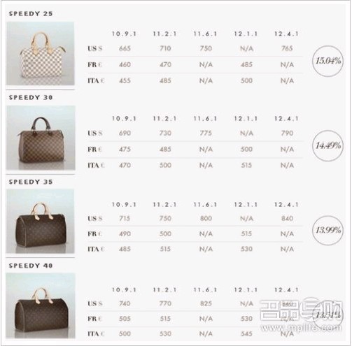 今年4月份,全球知名奢华品牌LV ( Louis Vuitton 路易·威登)又完成了涨价,这一次调价地区是美国,临上一次法国地区调价仅3个月。本期我们特地挑选了几个经典款,并将这些款式从2010年至今的价格变化做了比较,发现有的款式涨幅竟然高达27%!