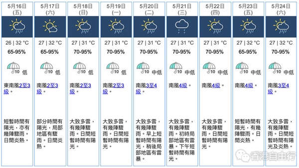 根据天文台观测数据,本港今日将出现阳光与骤雨交替的天气,市民在日间可感受到明显炎热。据天文台9日天气预报,周末(17日至18日)最高温度均达32度,最低温度均为27度,有几阵骤雨,日间炎热。市民外出需注意防晒及适时补充水分。下周一将再现几阵骤雨,提醒市民出行宜随身携带雨具。