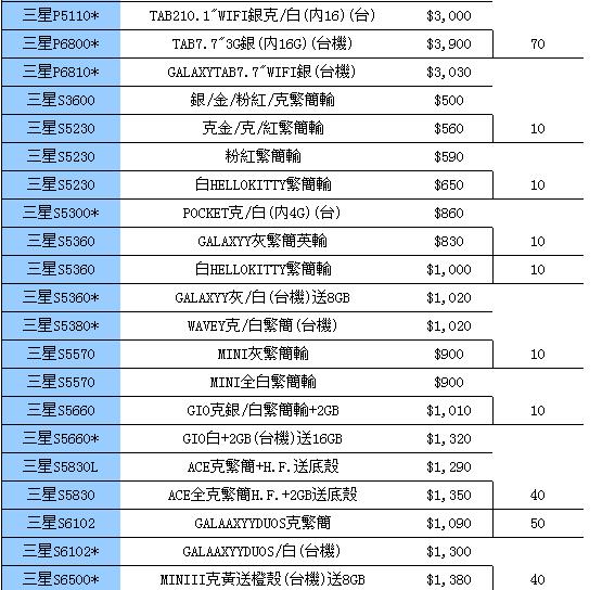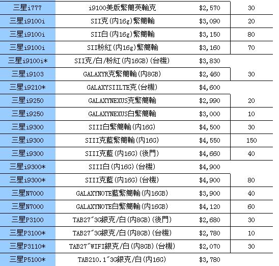 以下报价,如表内无特殊说明,则为原装配件的行货/后行/水货/上台机报价,一般来说原装配件为一电一充,“克”意思为黑色,“繁简英”是指手机所支持的语言,“繁简输”是指手机支持的输入法,“笔画”是指手机的键盘有笔画刻字。