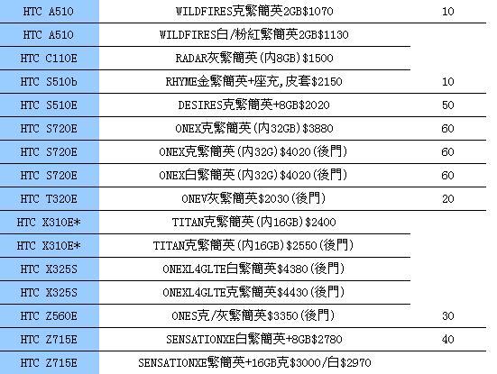HTC手机在近期有One系列大行其道,吸引了众多机友的眼球,不过One系列的高端机型暂时价格也较高,非一般市民接受。本周的One X降价60港元,仍在4000港元以上的高位。入门级的One V同样超过2000港元,暂时价格稳定。再看经典款式,尽管每周都有降价,不过类似S510b这般偏向女性设计的靓丽机型还是给人价格偏高,只有入门级的野火和A310E性价比不错。
