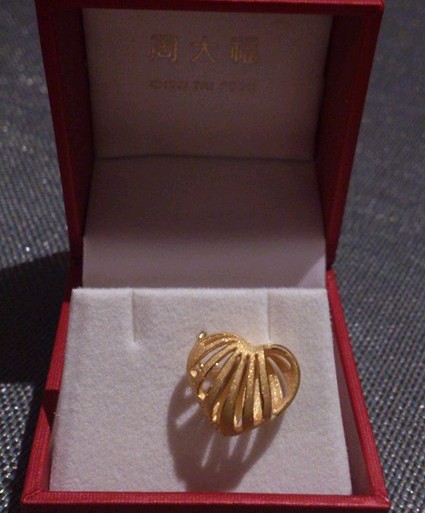 不过,周大福店与店的计算价格不太一样,刚刚那个店铺就是黄金单算,手工费单算。现在说说另一个,在这个周大福店里,买的是生肖狗狗的坠,也是店铺中没有摆出,最后去拿的货,在等的过程中,看到了那个镂空的小桃心,觉得很好看,就一起拿下了,算价格时,我就问,手工费怎么打折,这个销售说,都放在一起算,与链子一起算,我不知道这样算,我是不是很亏啊,很不划算啊,有知道的姐妹吗,要是有,给我讲解下吧,我算是晕了,最后在这个店里,拿下了两个坠。
