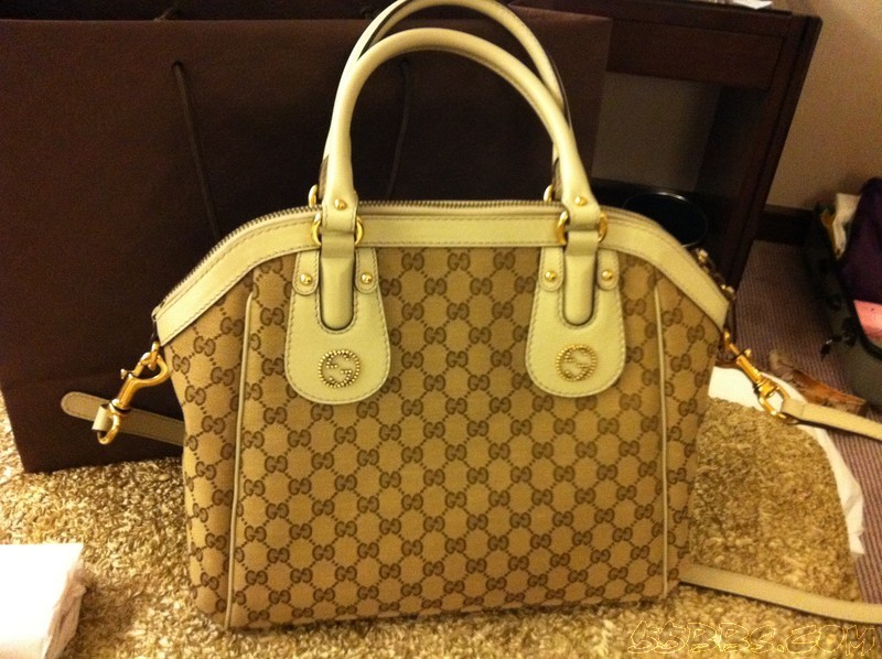 GUCCI包包,原价14990HKD 折后12741.50 HKD 。这家在DFS里面GUCCI店还算蛮大的,款式也蛮多的,我试了好几个包包,就看中这个,其他实在没有喜欢的,这个还算可以吧。。。对了,说是这个包是今年的新款(指颜色)。