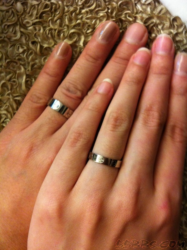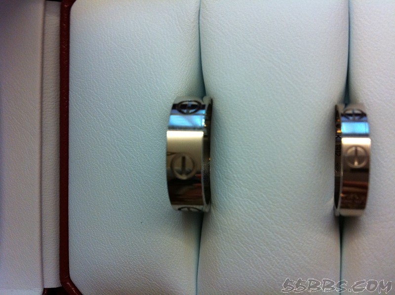 卡地亚 LOVE系列 没什么特别 泛滥款,,呵呵。对戒嘛随便买个干净一点的,。我比较喜欢简洁款的。来之前就想好要买这个款了,所以动作很快,那个店员说:“都没有遇过向你们一样那么快就决定了的客人,你们要不要再看看啊?” 哈哈。这个人蛮搞笑的。脸部表情一直在笑,其实我也不知道他在笑什么- - 卡地亚购于半岛酒店,没涨价。宽版好像是12000多,窄版好像是7000多, 反正一共是20500HKD。。。。