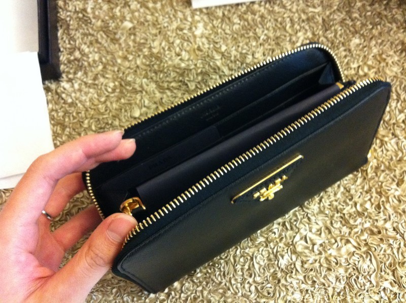 Prada皮夹,一直在纠结到底买Chloe的还是Prada的,Chloe的是在DFS看到的,无折扣,也是5000多港币 我很喜欢,和Prada的这个价格差不多。后来去了半岛酒店,那边真的是人又少又清静,买卡地亚的戒指的时候,本来是先去海港城MIUMIU旁边的那家,两次去都排队,后来就直接去半岛酒店了,离海港城其实很近,走个15分钟左右就到了。那边什么牌子都有,真搞不懂为什么那么多人都要到海港城去买东西?人又多,营业员都没空理人的。。。实在太忙。。!不多说啦上图,简洁的,超级普通的黑色Prada皮夹。谈不上什么很喜欢,就是想想算了~实在不高兴在跑去DFS买Chloe了, 港币5000整拿下!!